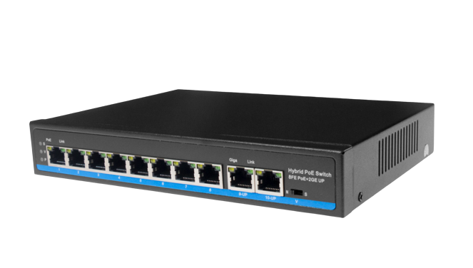 - Коммутаторы. Играют важную роль в обеспечении связности сети, обеспечивая также электроснабжение компонентов (PoE). Они позволяют эффективно передавать данные между устройствами, обеспечивая быстрый и стабильный обмен информацией в построенной системе охранного мониторинга.